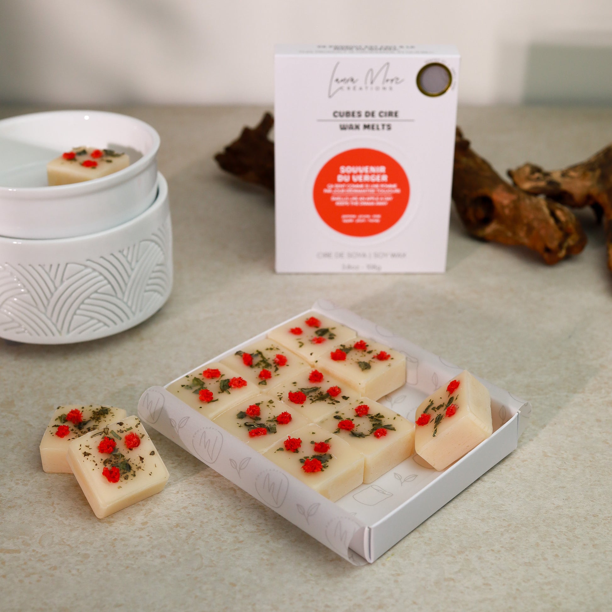 Ces cubes de cire sauront te transporter directement dans un verger! Ils offrent une belle odeur de pomme croquante & juteuse. Ils sont exactement ce qu'il te faut si tu veux revivre une cueillette aux pommes en famille!