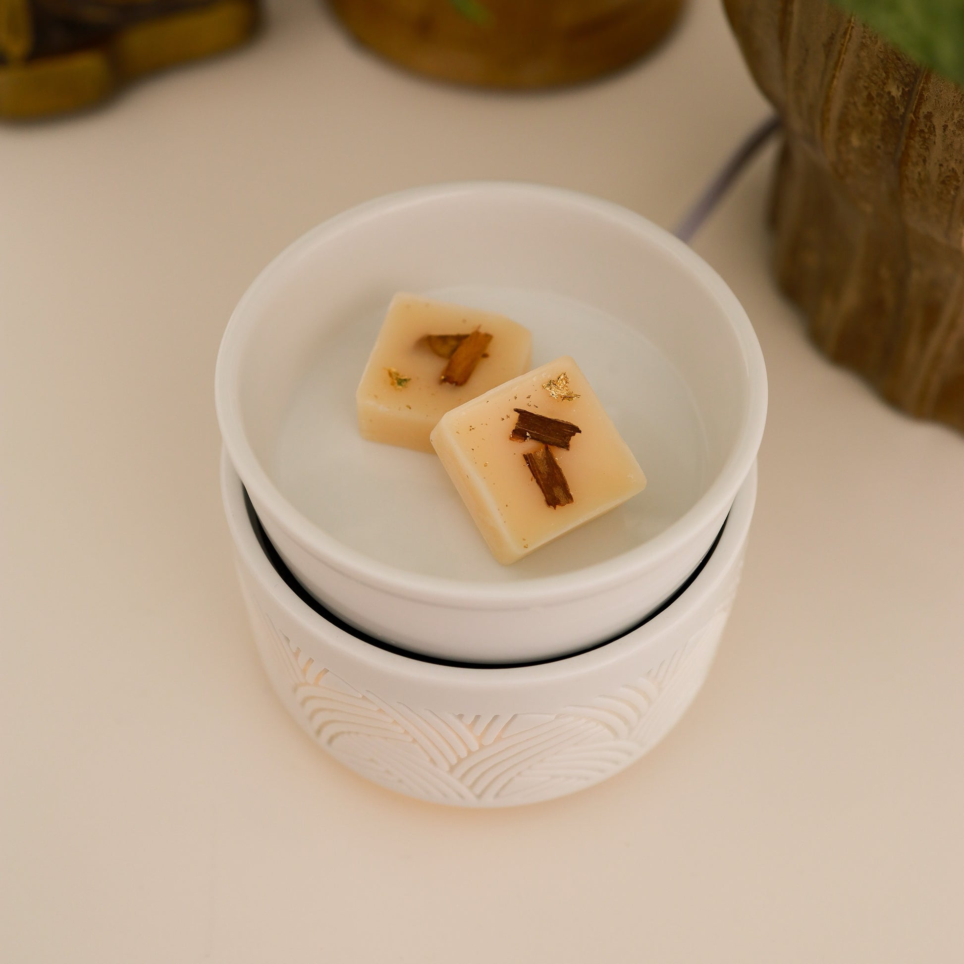 - Place un ou deux cubes de cire parfumés dans le contenant à cire de ton diffuseur électrique.