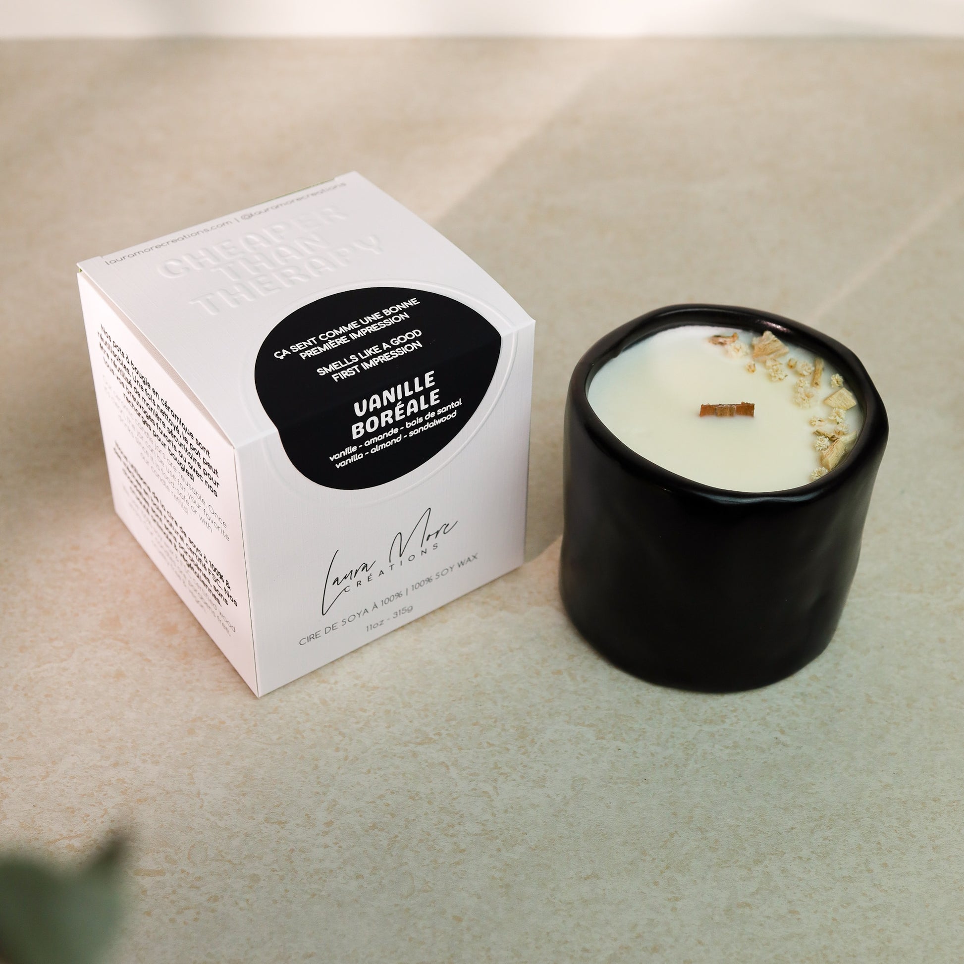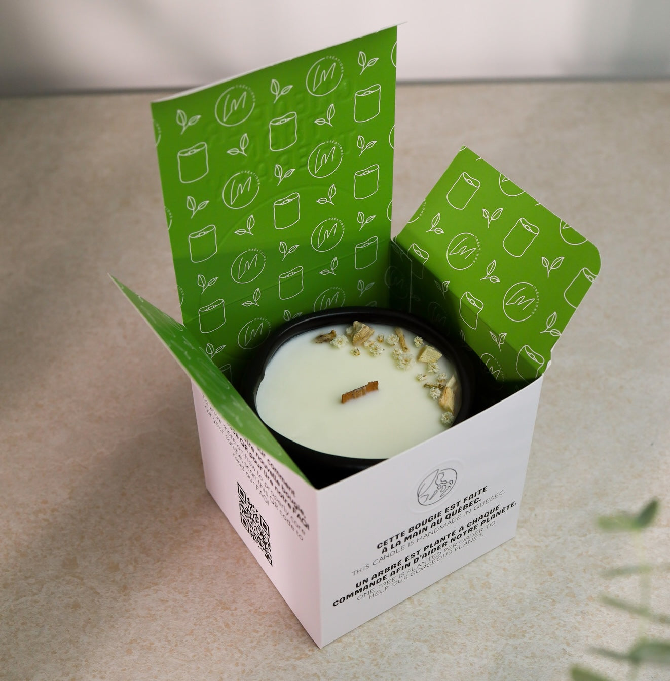 Nos bougies sont versées à la main au Québec! Elles sont faites de cire de soya à 100% et de fragrances non-toxiques. Elles sont sans parabène, végétaliennes et sans cruauté animale.